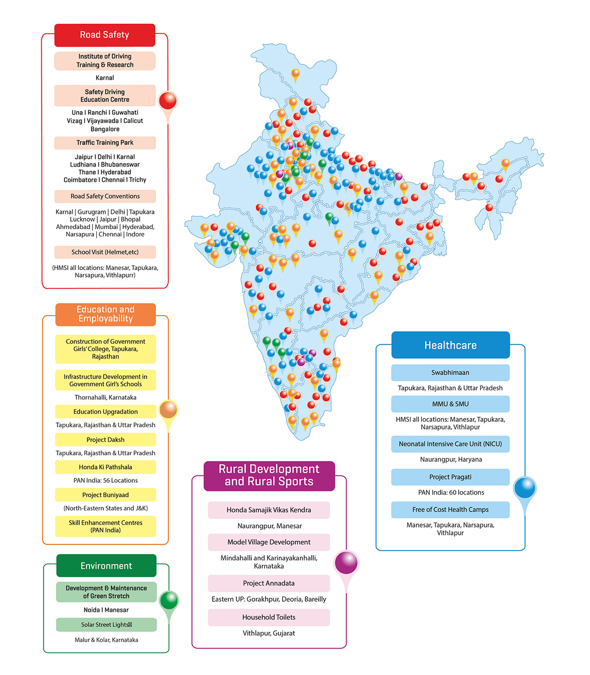 HIF’s objectives and all projects undertaken align with the activities stated in Schedule VII of the Companies Act 2013. Honda India Foundation’s focus areas are Road Safety, Education, Healthcare, Rural Development, and Environment. With a strong field presence, it operates across India and reaches out to communities to meaningfully contribute to nation-building. HIF’s holistic initiatives have positively impacted more than 12 million individuals across India.