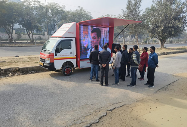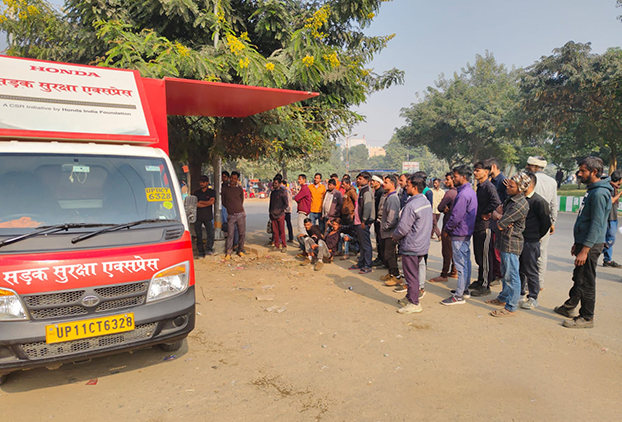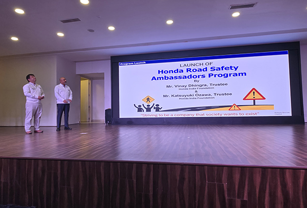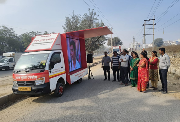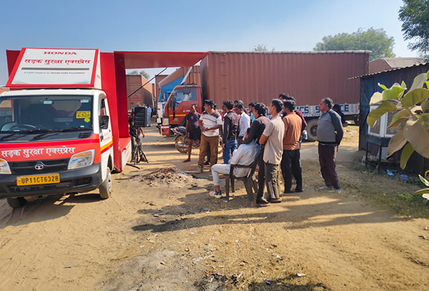 The Sadak Suraksha Express, launched by Honda India Foundation (HIF), is a travelling road safety awareness van designed to strengthen grassroots awareness on safe mobility. It spreads essential messages on traffic rules and pedestrian safety across rural regions, ensuring safety education reaches even the most remote communities.